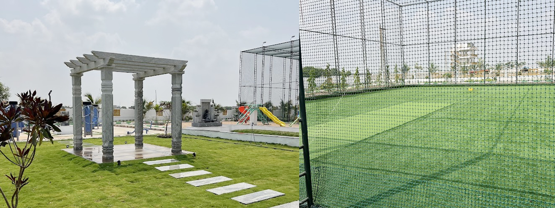 Invest in Mint Evara, to secure your dream home within a premium villa plots layout situated strategically alongside NH-44. These exquisite plots offer ample space, serene green parks, and a high-end lifestyle. Mint Evara, this KUDA-approved layout offers customized duplex villas and open plots from 252sqyrds to 386 sqyrds . The project includes lavish amenities like a swimming pools, open gym, yoga deck, meditation lounge, and even a cricket practice net.